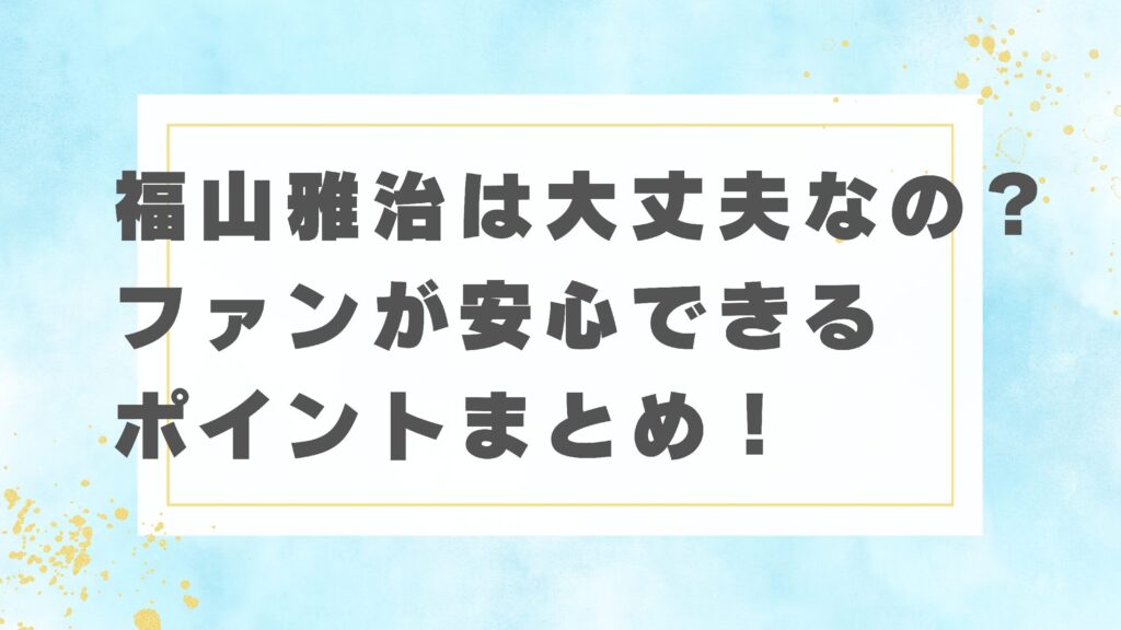 福山雅治は大丈夫なの?ファンが安心できるポイントまとめ!